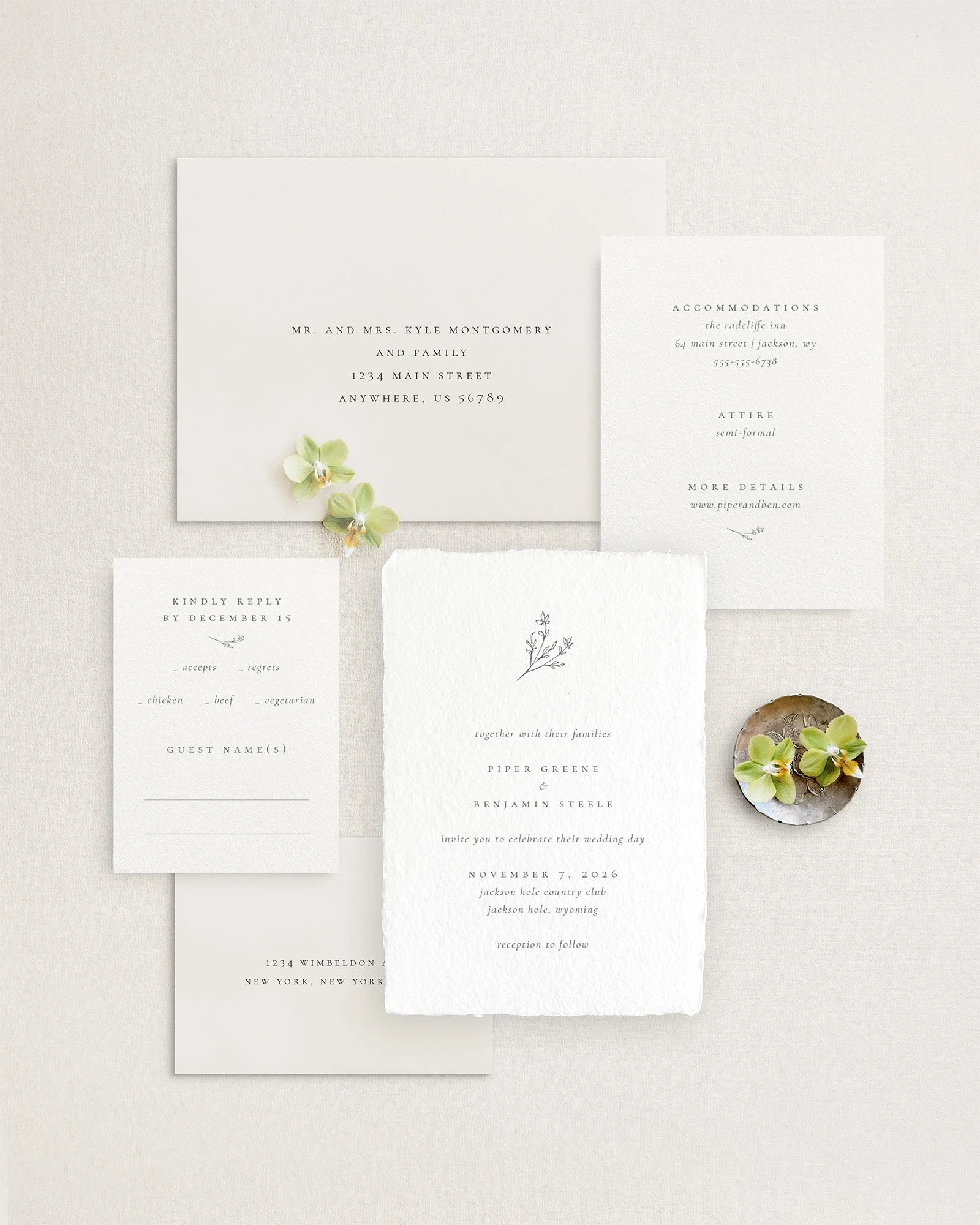 Every suite is created to feel elevated yet approachable, allowing understated beauty to speak through fine materials, elegant typography, and carefully considered details. The result is stationery that feels enduring and artful, setting the tone for a celebration that is sophisticated, meaningful, and unmistakably yours.