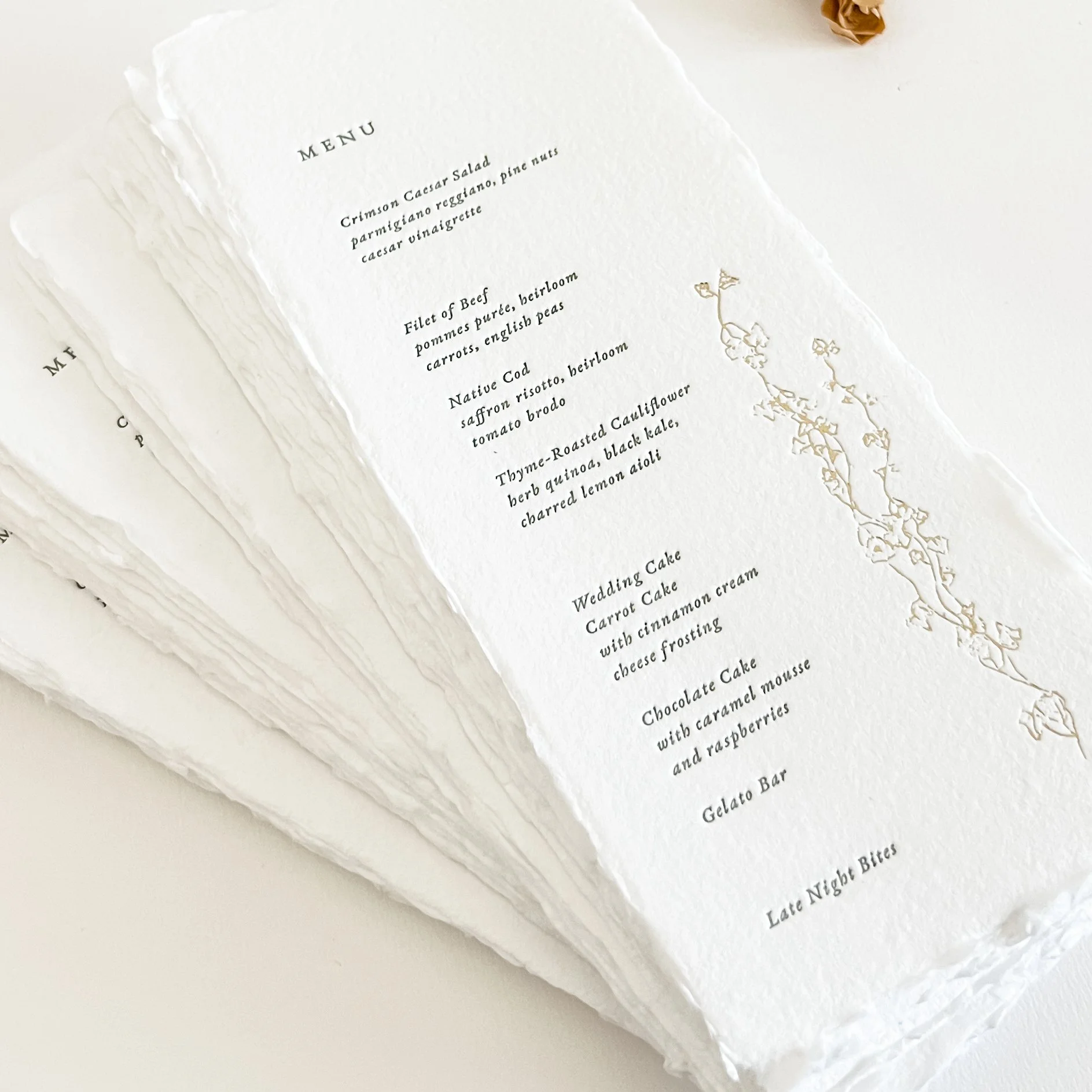Menus | Programs | Signage | Table Assignments | Place Cards | Thank You Cards | Welcome Notes | Custom Maps | Itineraries