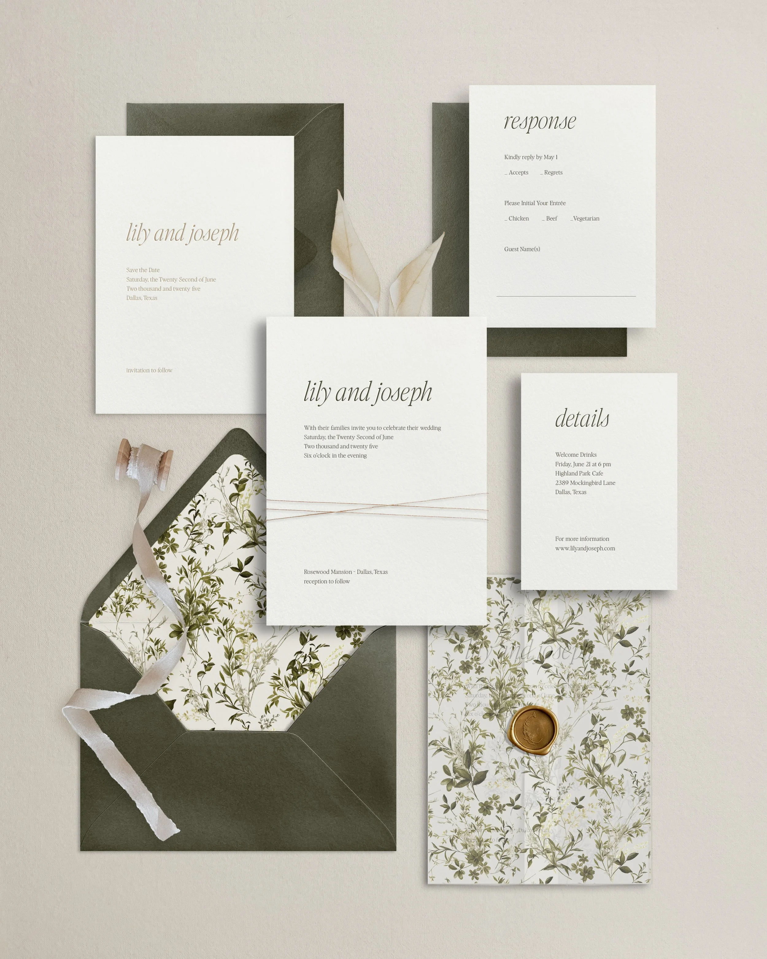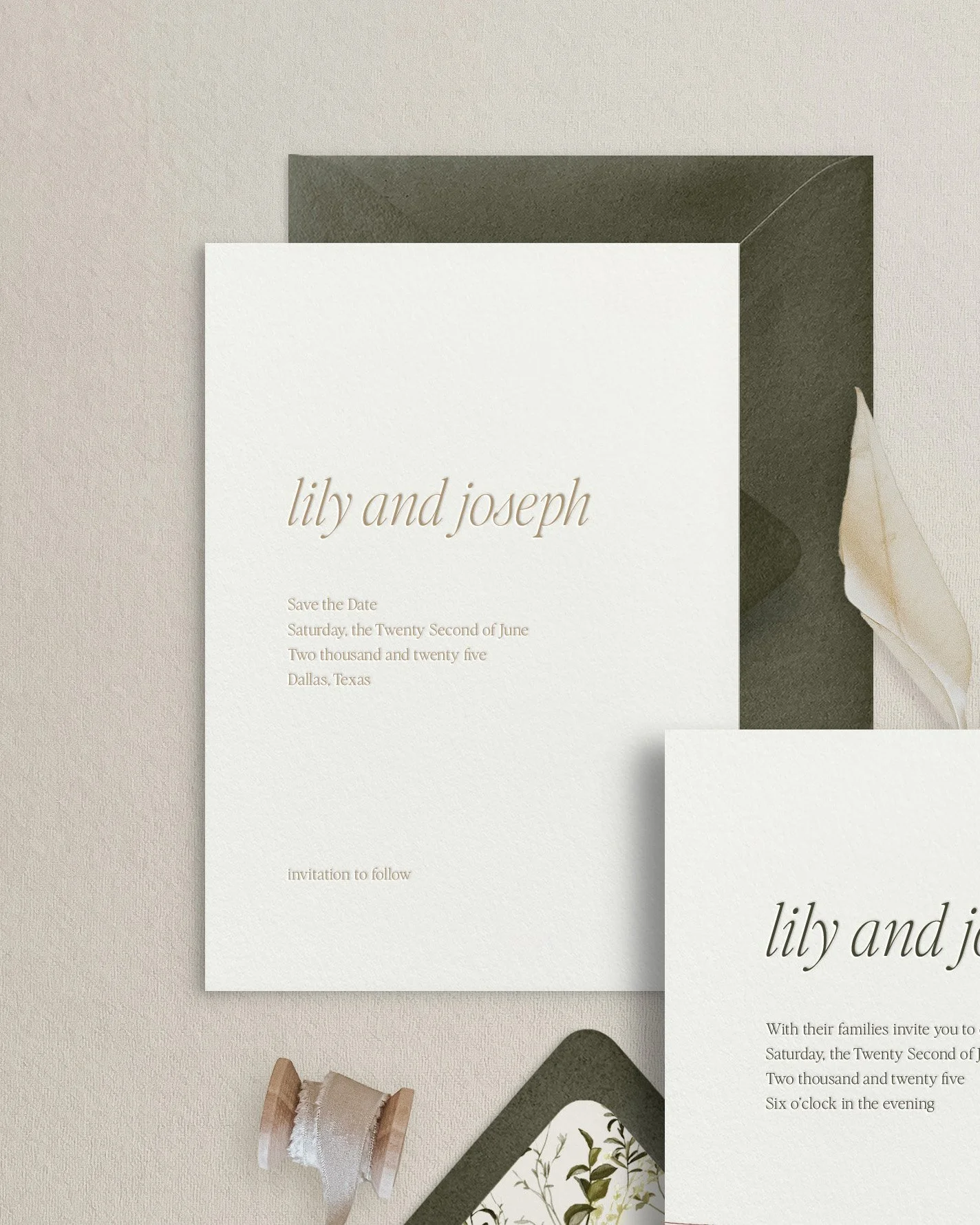 This timeless yet modern suite offers endless versatility - personalize it with a custom illustration, your choice of paper, and a refined color palette to beautifully complement any celebration style.