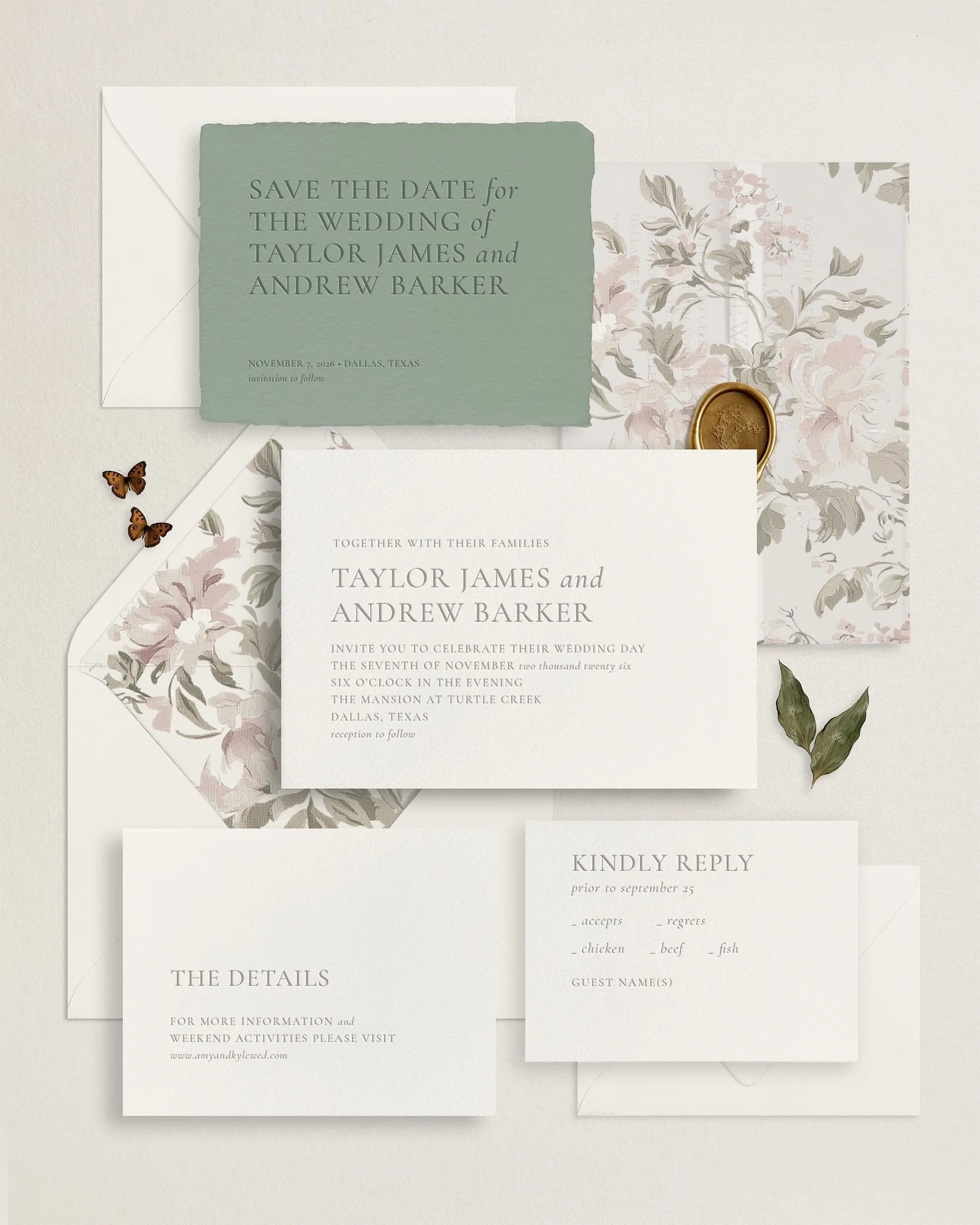 Your save the dates and invitations should beautifully capture the essence of your unique story - a refined first impression of the celebration to come. At our studio, we prioritize simplicity and elegance, crafting designs that blend timeless style with heartfelt intention.