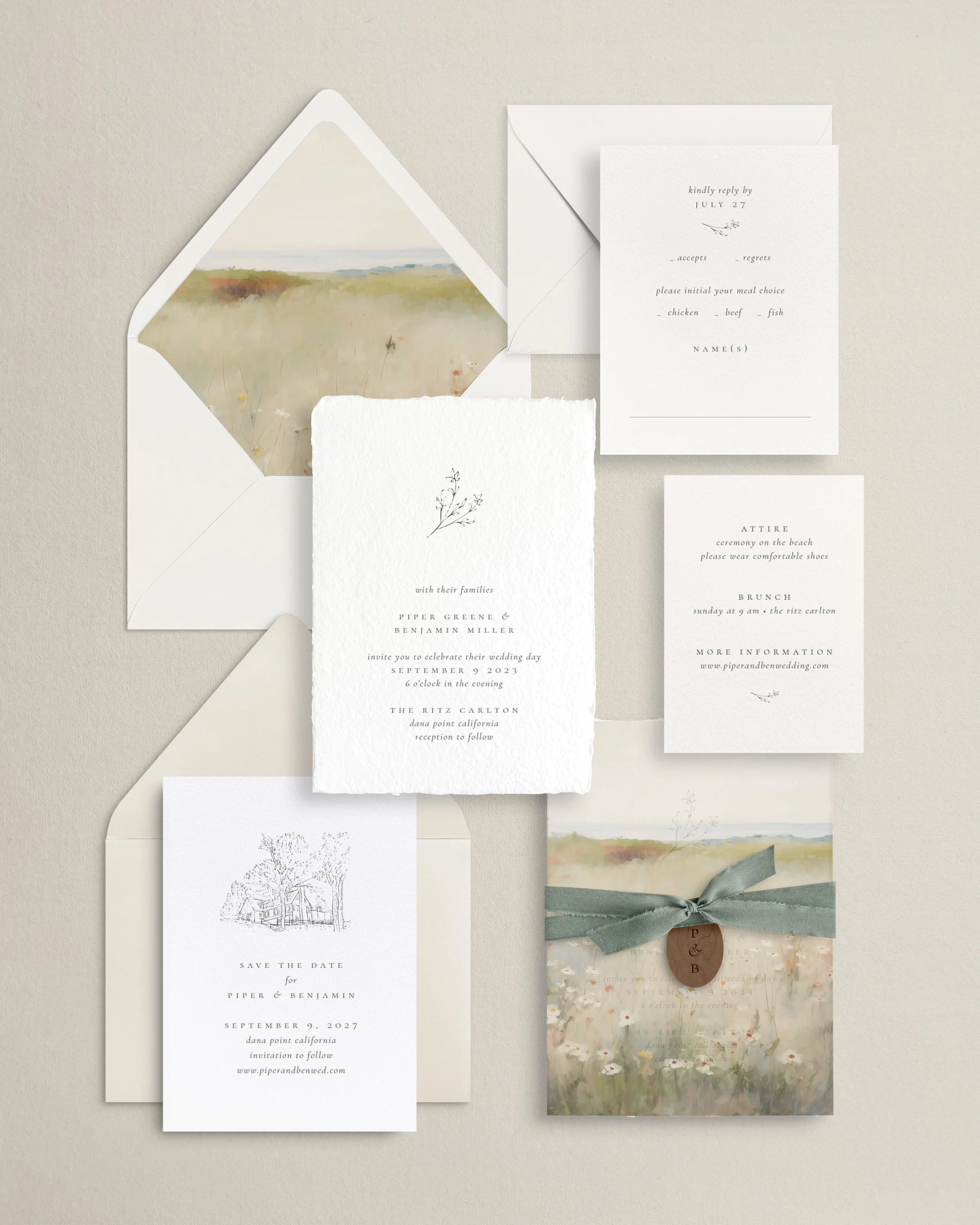 This timeless yet modern suite offers endless versatility - personalize it with a custom illustration, your choice of paper, and a refined color palette to beautifully complement any celebration style.